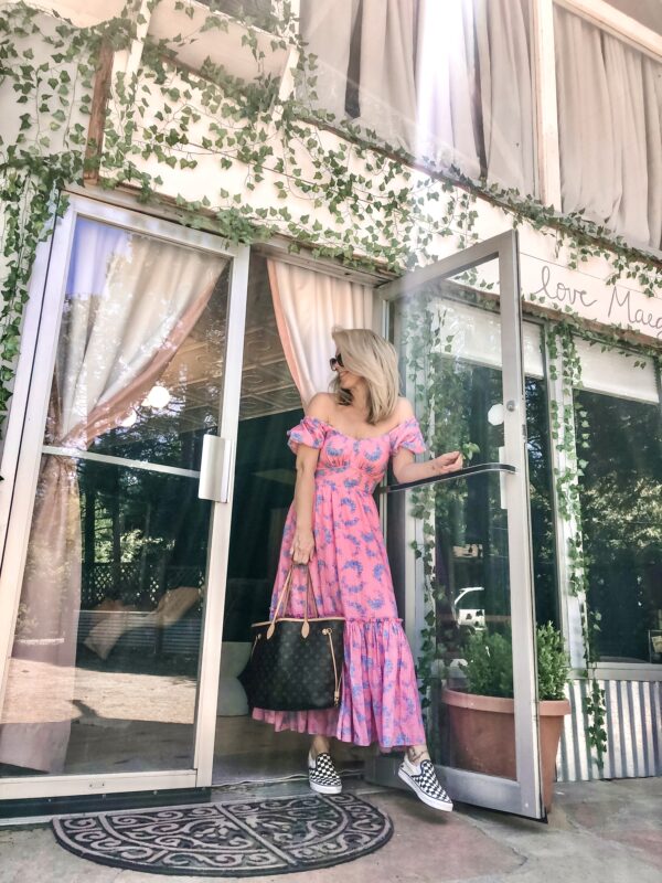 What I’m Wearing… * Pastel plaid sundress – has a ruched top, with tie straps – could also be worn strapless, like a tube top (it’s sold out, but this is a cute alternative: pastel gingham scrunched dress // and I’ve linked more in the shopping widgets below * Cropped white sweatshirt layered over (has …