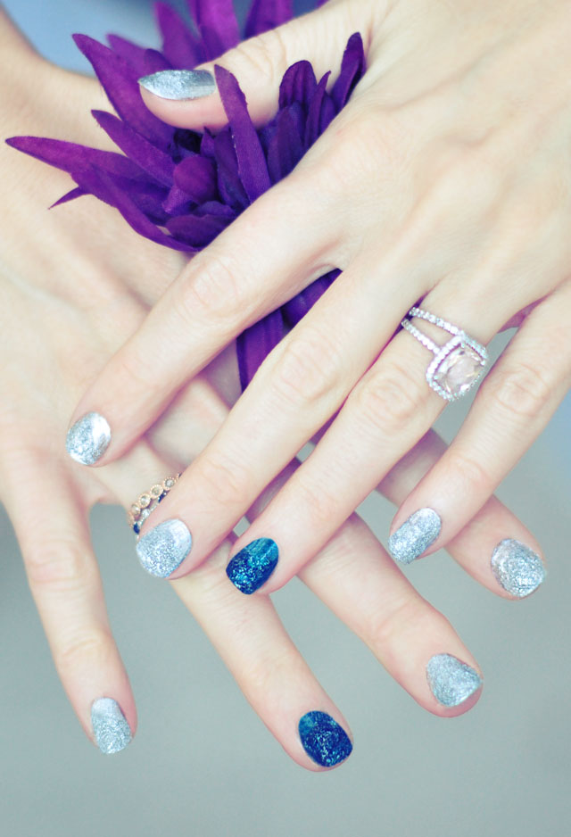 * I used metallic silver polish and shimmery teal for my accent nail {but any metallic colors will do} You get more depth and texture with the shimmery metallics than flat colors.