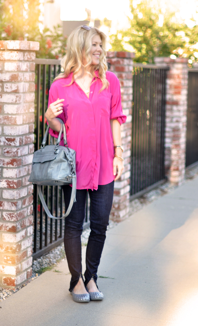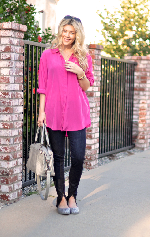 * Vintage oversized hot pink slouchy blouse. {similar but new here and this adorable polka dot blouse is only $14.99!} I actually felt a little grandma when I first put this on because it was so huge, but I loved that the back was a bit longer than the front and a hint sheer, which saved me from looking like I was one of the Golden Girls in 1987, hopefully.