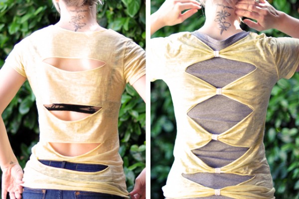 I love a great t-shirt DIY and this one is extremely simple! As shown above, you can wear it two different ways… the first is simply sliced {and reminds me of one of my favorite artists, Lucio Fontana} and the second style, by creating pseudo-bows out of each sliced section. You can choose to wear …